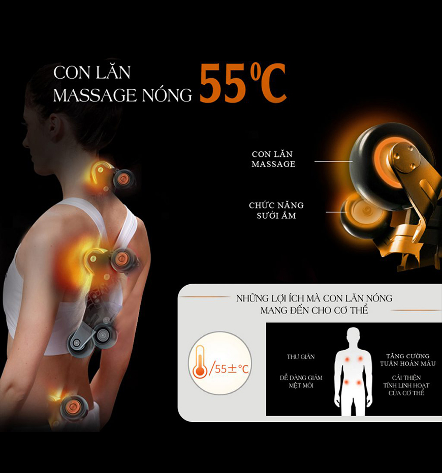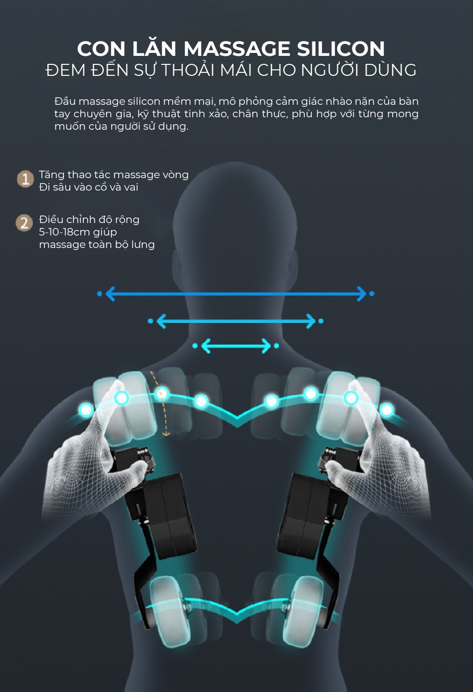 | Con lăn massage | Silicone mềm (6 bánh xe: 2 đơn, 2 kép). |