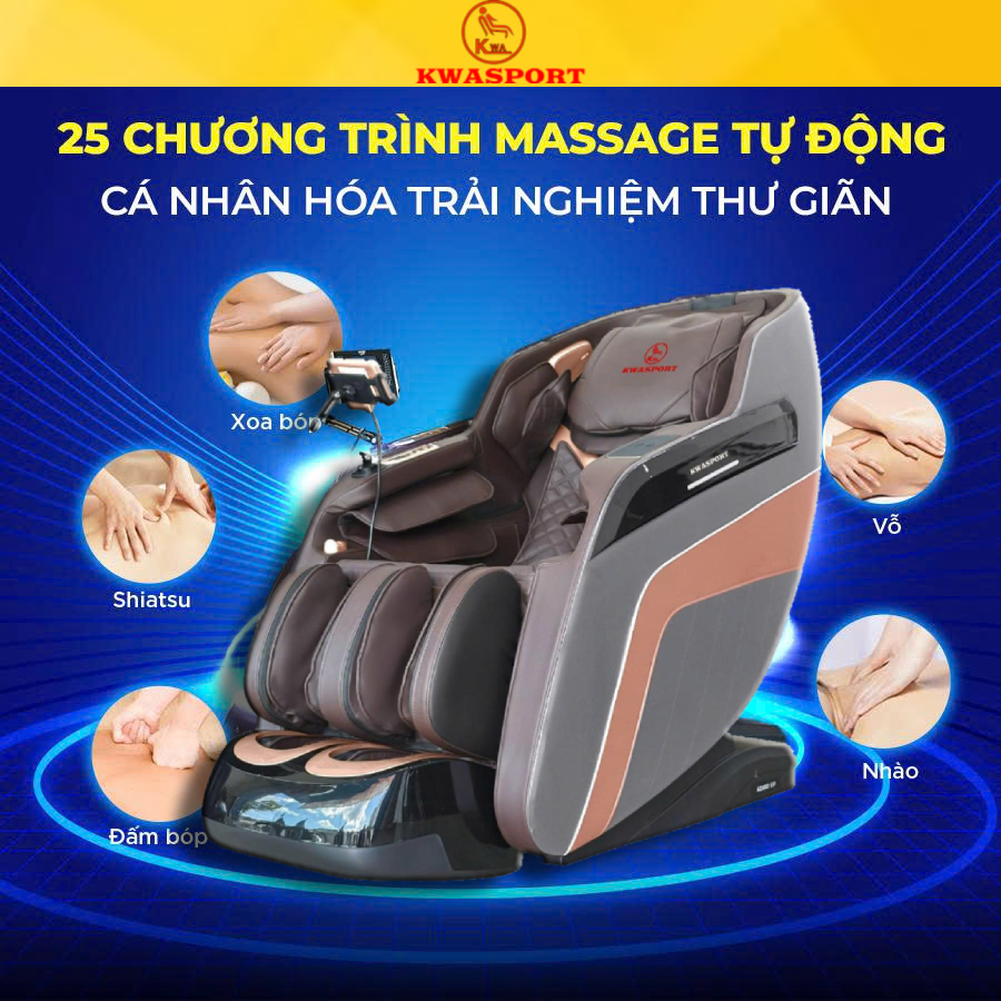 Ghế massage KWASPORT K-200 toát lên vẻ đẹp hiện đại và tinh tế từ những đường nét đầu tiên. Sự kết hợp hoàn hảo giữa màu nâu sang trọng và điểm nhấn cam tươi tạo nên một tổng thể hài hòa, vừa ấm áp vừa năng động. Thiết kế này không chỉ phù hợp với nhiều phong cách nội thất khác nhau mà còn có thể trở thành điểm nhấn ấn tượng trong không gian sống của bạn.